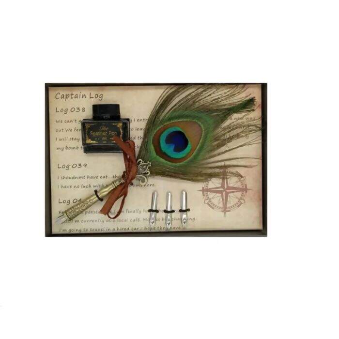 Descrição Kit Caneta Tinteiro Pena 25x15cm