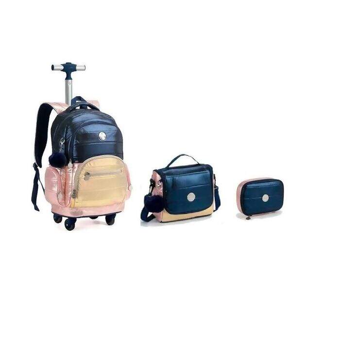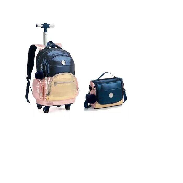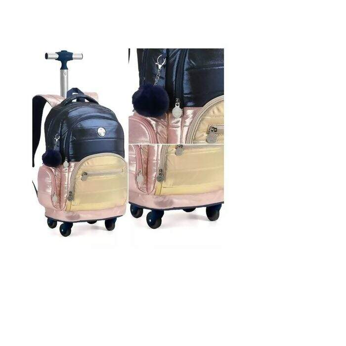 ESSA MOCHILA DE RODINHA JUNTOU O METALIZADO QUE A GENTE AMA E UMA MODELAGEM PERFEITA QUE CABE TODO O MATERIAL ESCOLAR!
