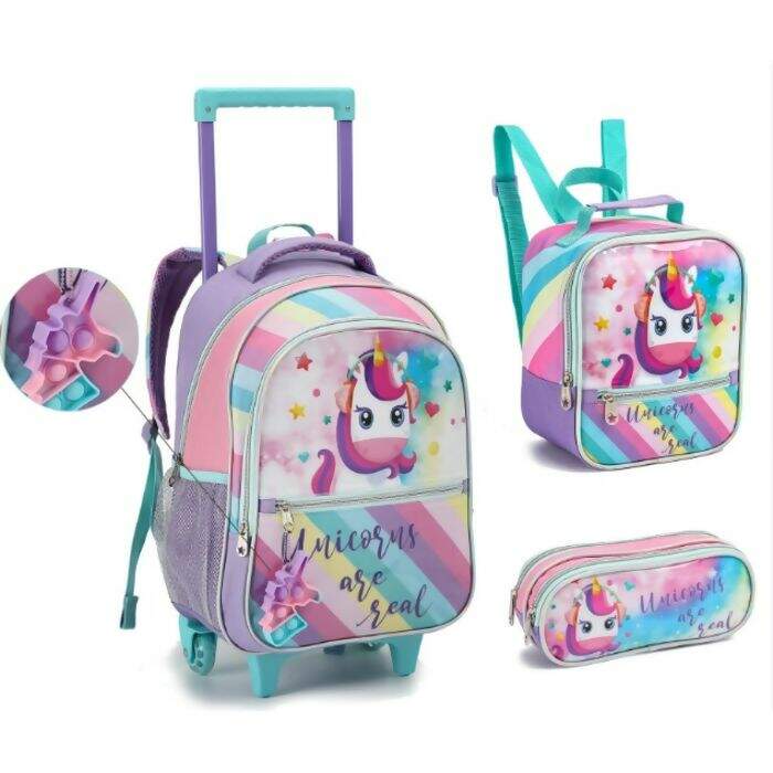 Kit Mochila Rodinha | Unicórnio Com Estojo e Lancheira | Clio
