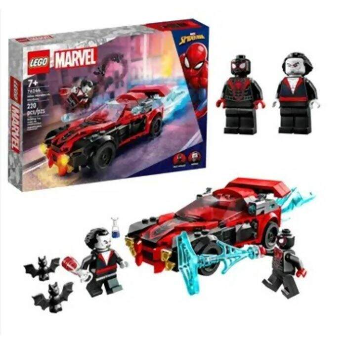Os fãs da Marvel vão adorar este conjunto de alta velocidade com minifiguras de Miles Morales e do vilão vampiro Morbius, além de uma série de acessórios