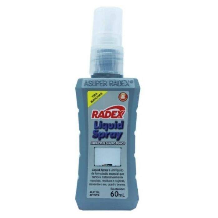 quadro branco. O Frasco contém 60 ml e possui uma válvula de spray, facilitando a limpeza.