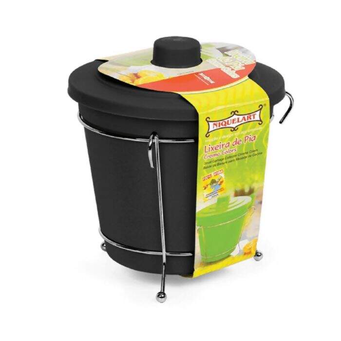 Descrição Lixeira de Pia Com Suporte Cromus Colors - Niquelart