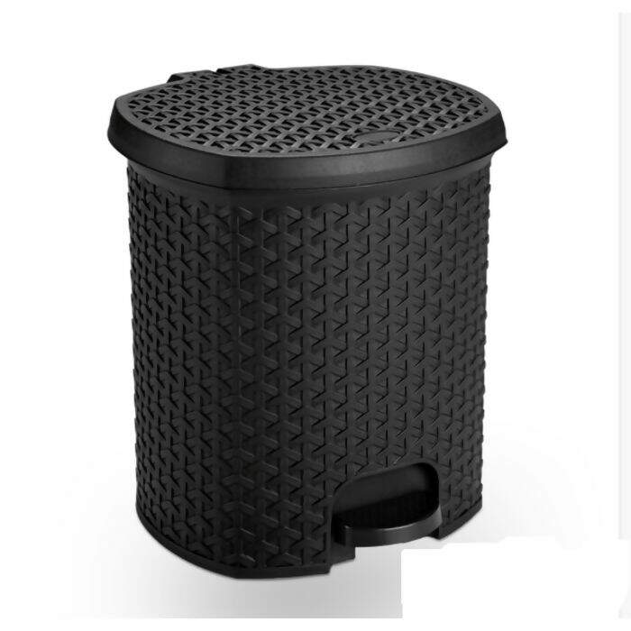 A Lixeira 15 Litros com Pedal, é de plástico, trabalhada em rattan por fora e lisa por dentro, fácil de lavar e higienizar.