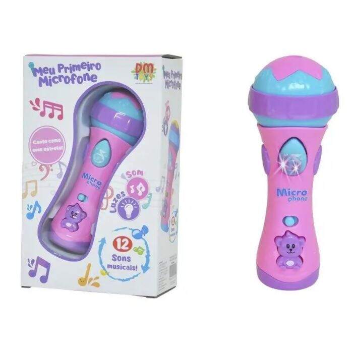Descrição Meu Primeiro Microfone Musical - 12 Sons e Luzes - Dm Brasil