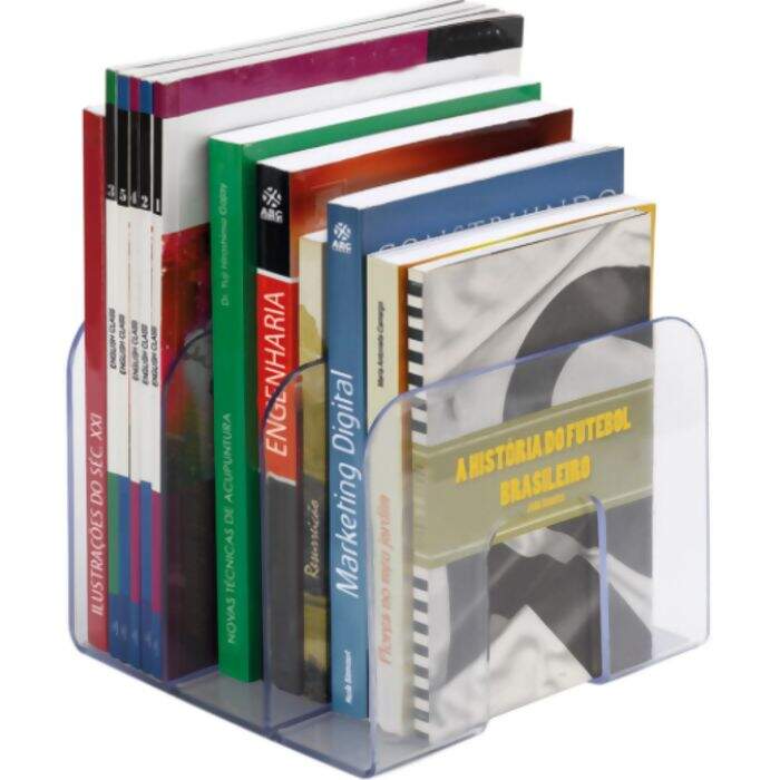 Ideal para utilizar sobre a mesa ou estante mantendo seus livros e revistas sempre alinhados.