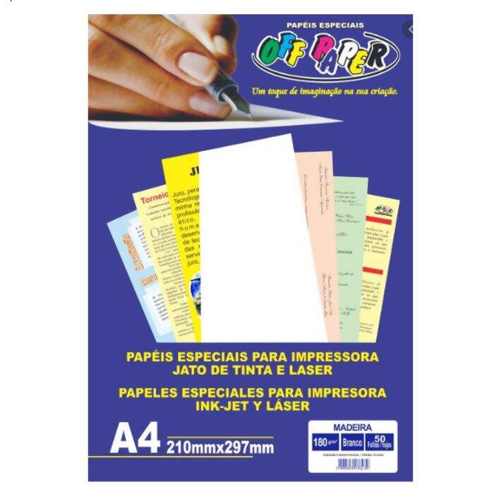 Papel Madeira A4 180 G/m² Branco 50 Und Off Paper
