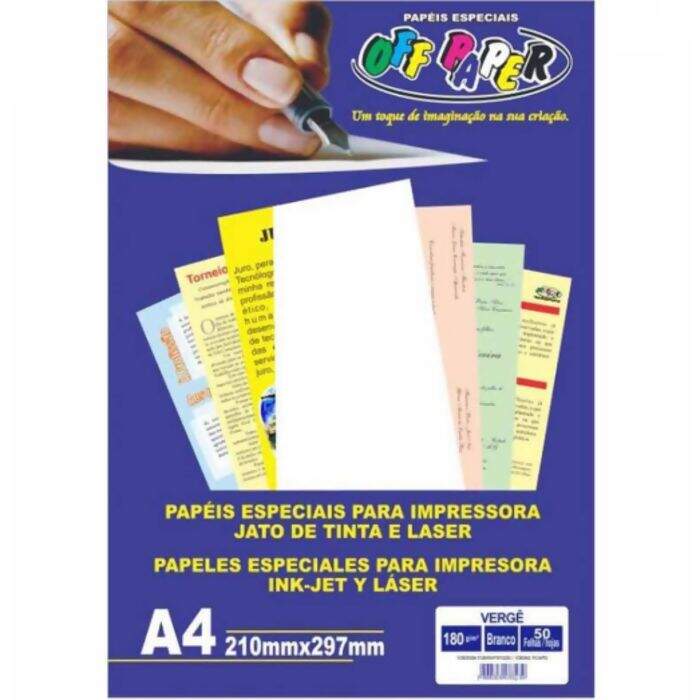 Papel Vergê Off Paper 180g, Ideal Para Uso Em Convites, Certificados, Apresentações, Garante Ótima Qualidade Para Uso Em Impressoras De Jato De Tinta, Devido A Sua Textura São Muito Utilizados Para Desenho Feitos Em Lápis Grafite Ou Colorido.