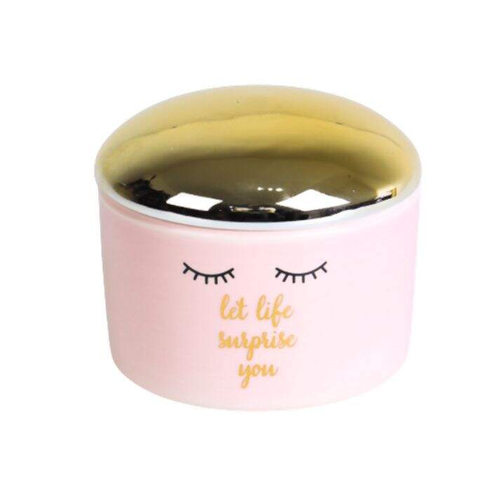 Porta Jóias cílios na cor Rosa com Tampa em Dourado, ótimo para decorar seu cantinho