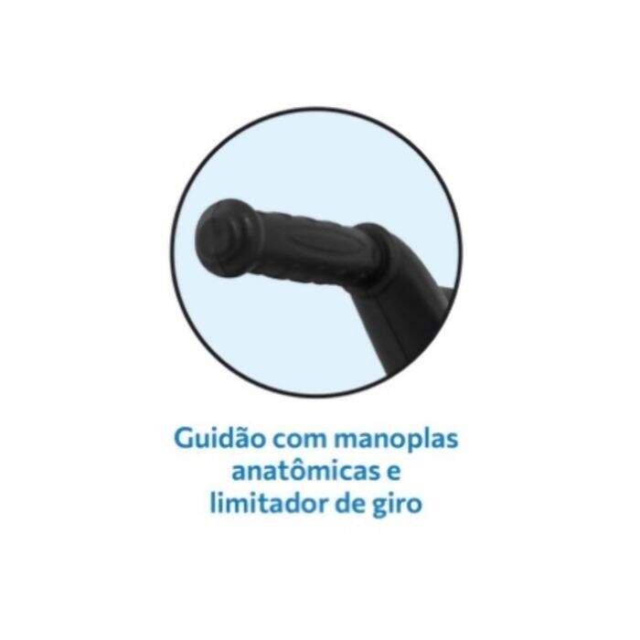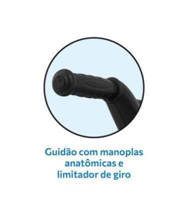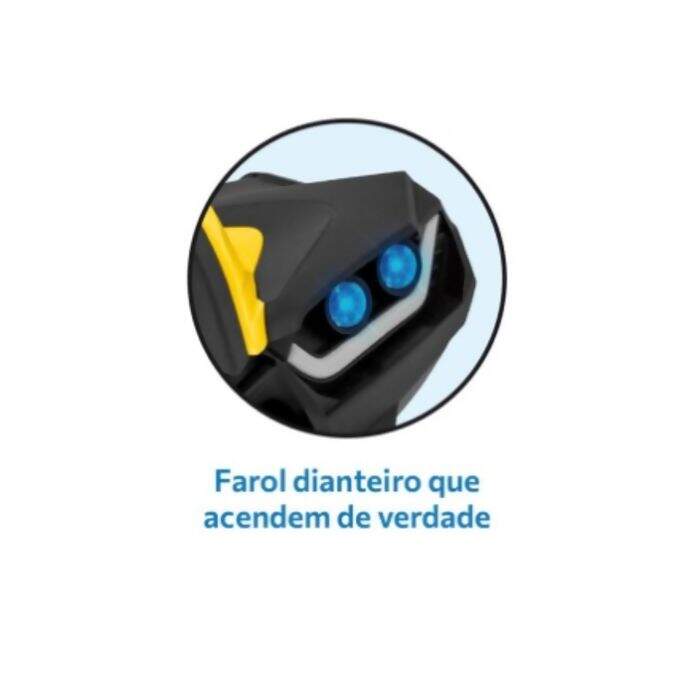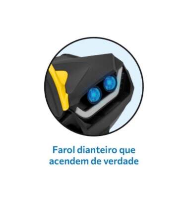 Guidão com limitador de giro e faróis dianteiros que acendem de verdade, garantindo uma condução segura.