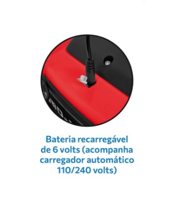 Movido por uma bateria recarregável de 6V, o Quadriciclo Elétrico 6V acompanha um carregador automático 127/220V para recarregar facilmente em qualquer lugar.
