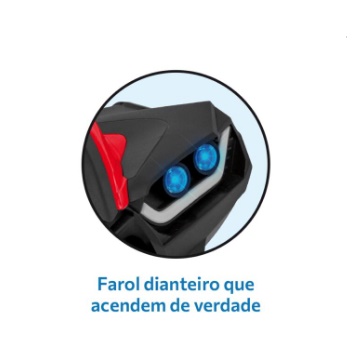 Guidão com limitador de giro e faróis dianteiros que acendem de verdade, garantindo uma condução segura.