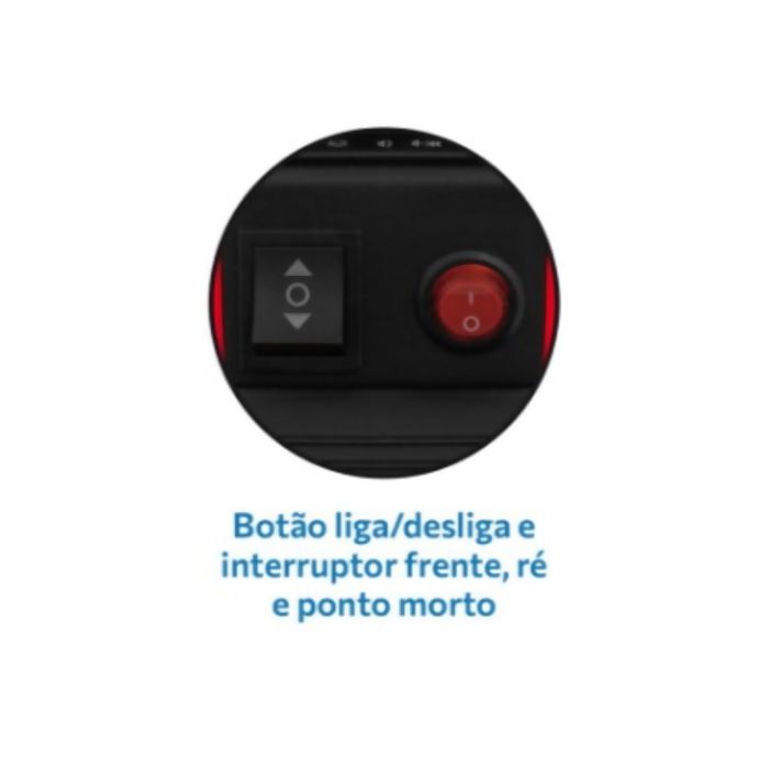 Botão liga/desliga para o produto, oferecendo facilidade de uso e controle sobre o quadriciclo.