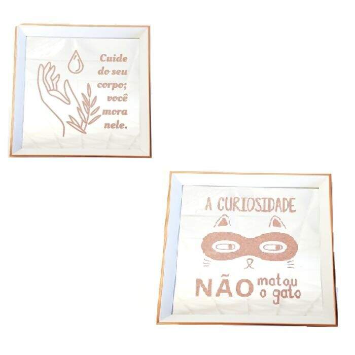 Descrição Quadro Espelhado Rose Gold - Frases Em Glitter