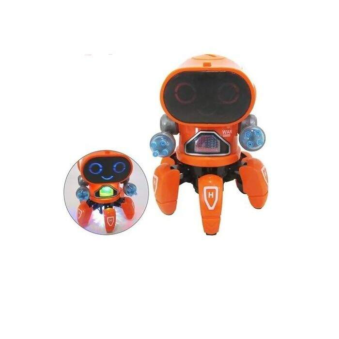 Esse é um robozinho muito lindo que dança. O robo tem música, 7 cores diferentes, mexe com os braços e anda mexendo as 6 perninhas.