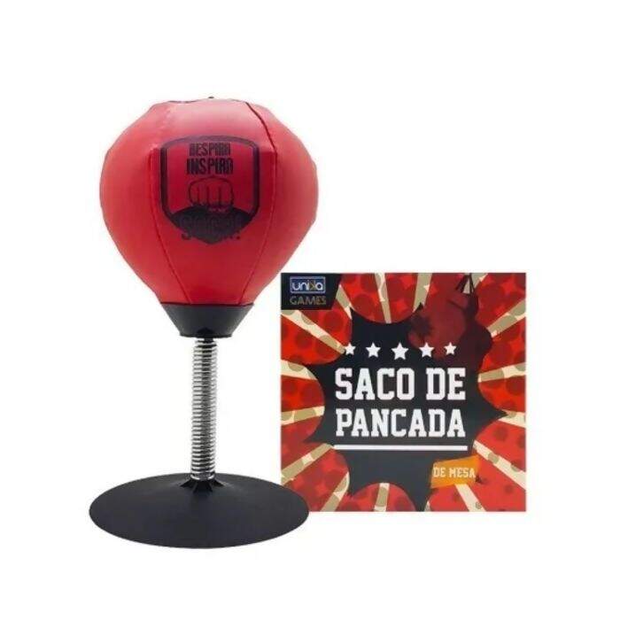 Saco de pancada de mesa é feito em couro sintético com uma câmera de ar interna inflável, suporte de mola em aço flexível e base de borracha que funciona como uma ventosa que fixa o saco de pancada em superfícies lisas para que enquanto levar socos não sair do lugar fixado.