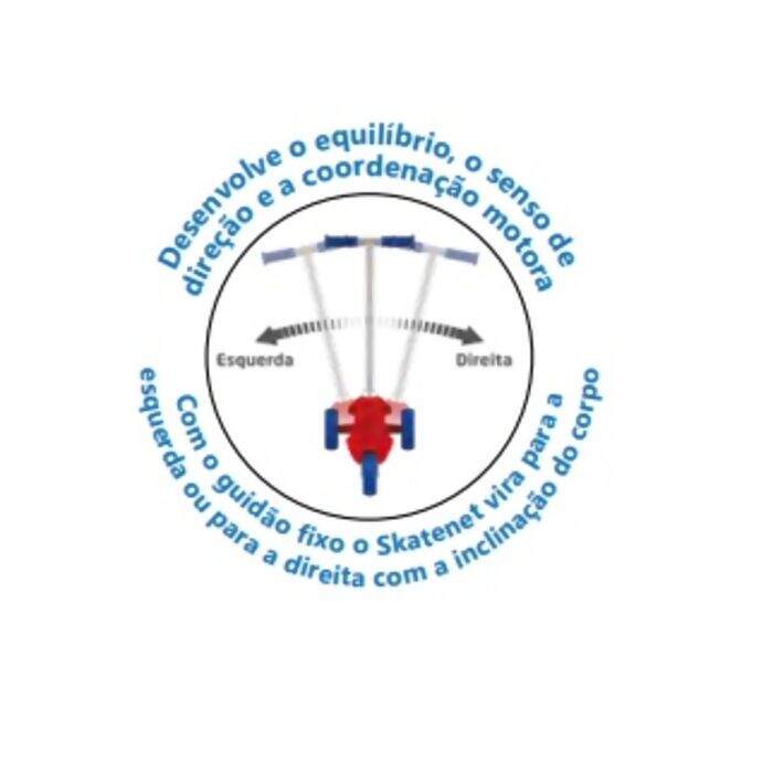 Com o guidão fixo o Skatenet vira para a esquerda ou para a direita com a inclinação do corpo.