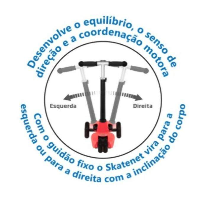 Equipado com um guidão ajustável, o Skatenet permite que a criança vire para a esquerda ou para a direita inclinando o corpo, proporcionando uma experiência de controle de direção intuitiva e emocionante.