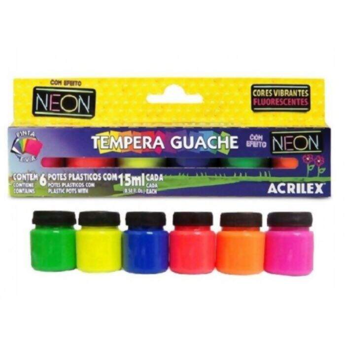 Tempera Guache Neon 6 Cores - Acrilex