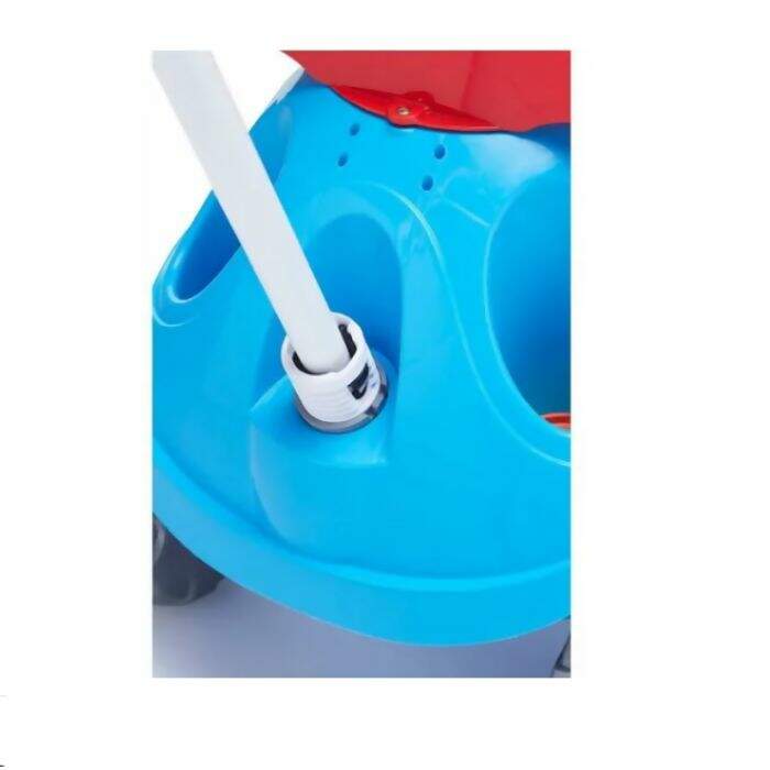 Com aro protetor, apoio de pés e empurrador, a segurança e a alegria estão garantidas.
