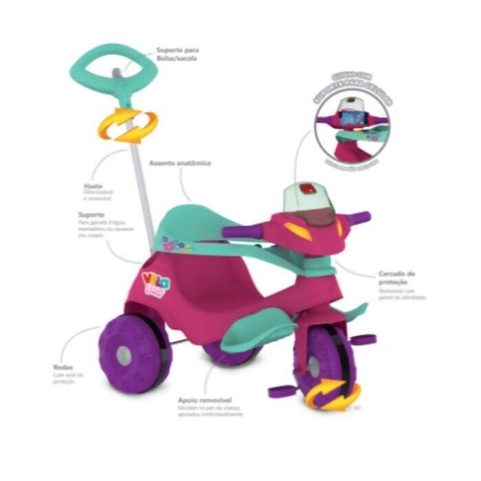 Descrição Triciclo Velobaby Passeio & Pedal - Rosa | Bandeirante