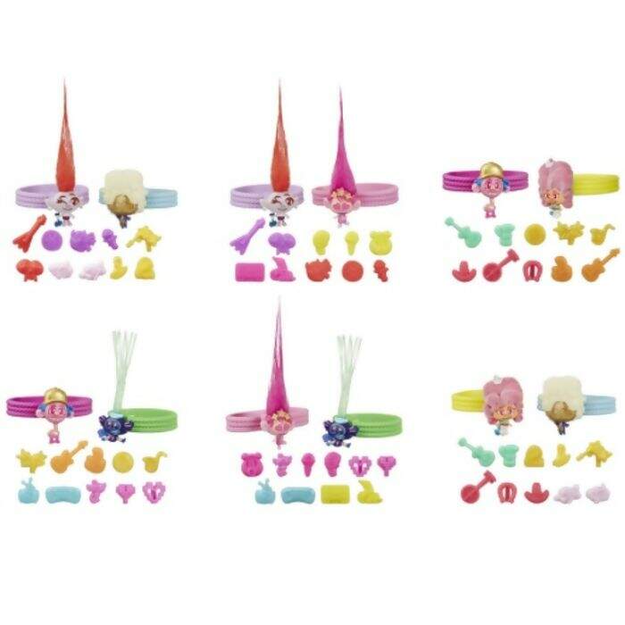 Este Kit Traz Os Personagens Favoritos do Filme Trolls World Tour e Inclui 2 Figuras, 2 Braceletes e 10 Pingentes Inspirados No Filme Para As Crianças Personalizarem Os Visuais Das Figuras.