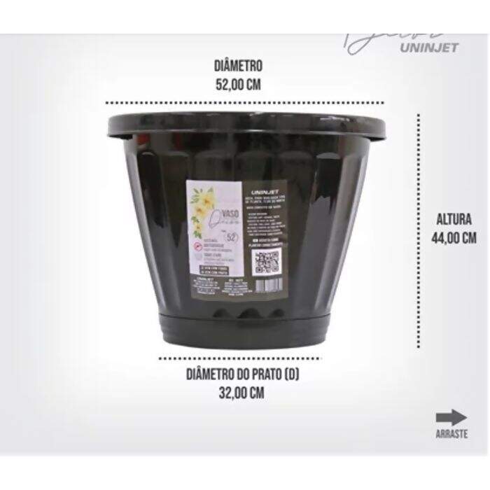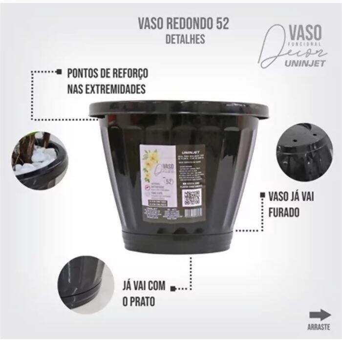 Descrição Vaso Redondo Com Prato | Preto - Nº52| Uninjet